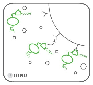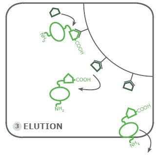 過剰量のRho1D4ペプチドはレジンに競合的に結合し、これにより解離した対象タンパク質は溶出液として回収されます。