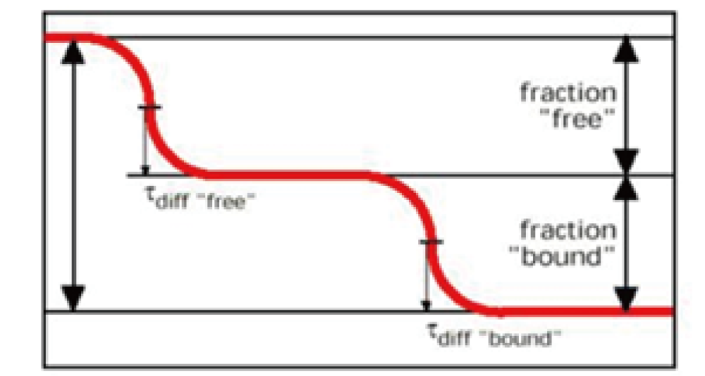 相関曲線の振幅は複合体の濃度と反比例し、曲線の遷移点は拡散速度と関連し、したがって複合体のサイズと相関します。