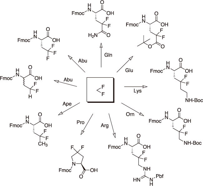 図3. 各種アミノ酸のγ、γ-ジフルオロ化
