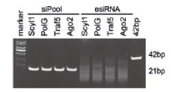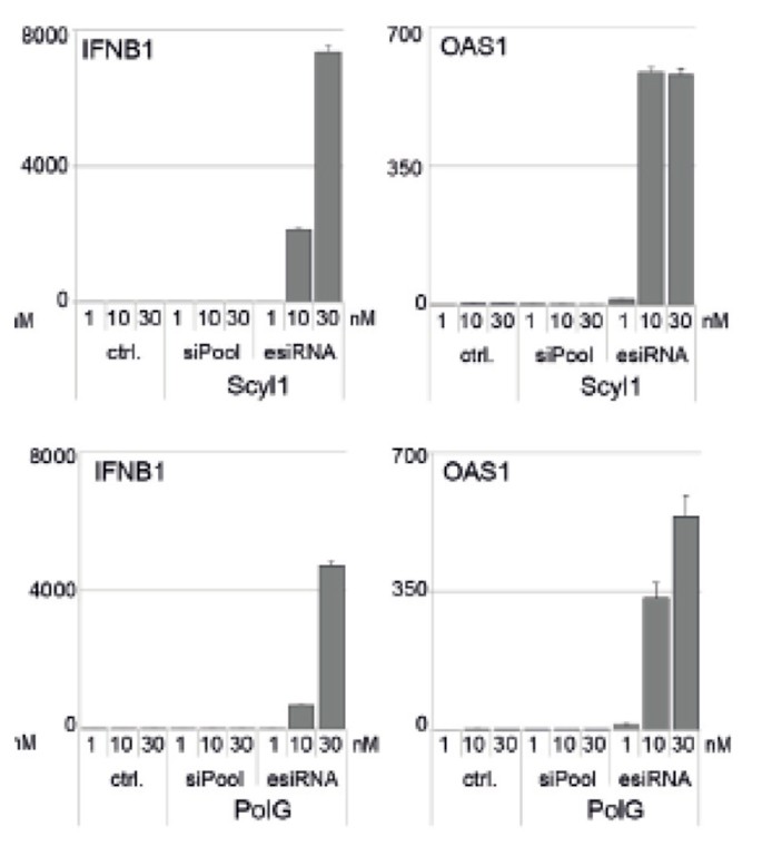 このため、esiRNAではしばしばインターフェロン応答を引き起こすことがありますが、siPOOLではほとんど応答を引き起こしません。
