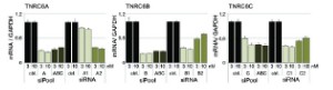 また、単独のsiRNAと比較して転写産物全体に対する影響も最小限に抑えられています。